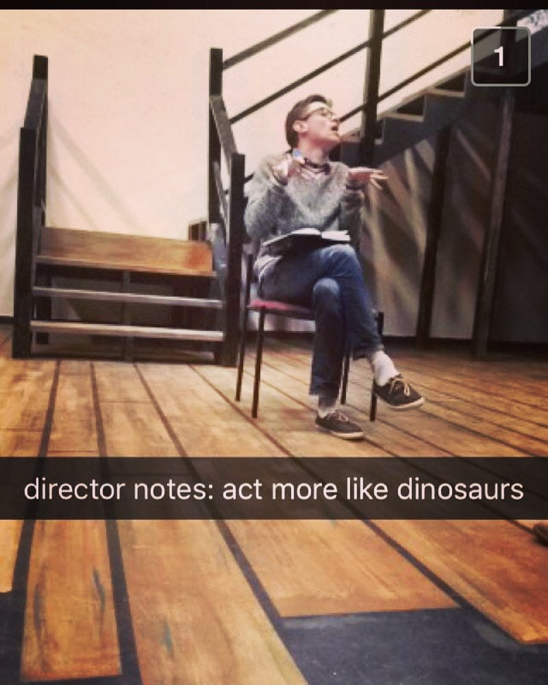 I guess what I’m reminding myself of here is that this thing that’s been scaring me for some time is really just all about playing. Dugdale points it out too: rehearsals should be light and welcoming. Theatre is a public service, and we are public servants. Yes, we can challenge ourselves and each other creatively. And yes, we may get tired, or bored, or irritated. But the environment should feel safe enough for everyone to continue making bold choices and have a good time putting on a show. That energy is important because it always makes itself visible to the audience in some way or another.